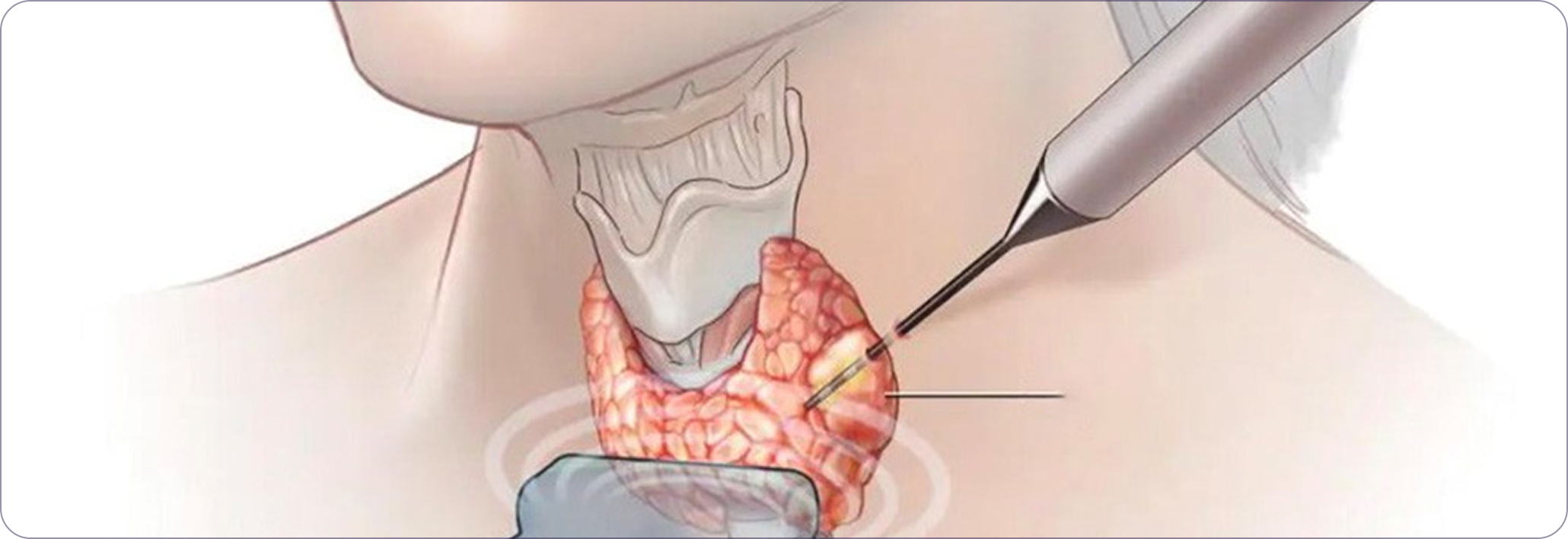 Heat (via radiofrequency or laser) is applied to destroy the nodule internally — without harming surrounding tissue.