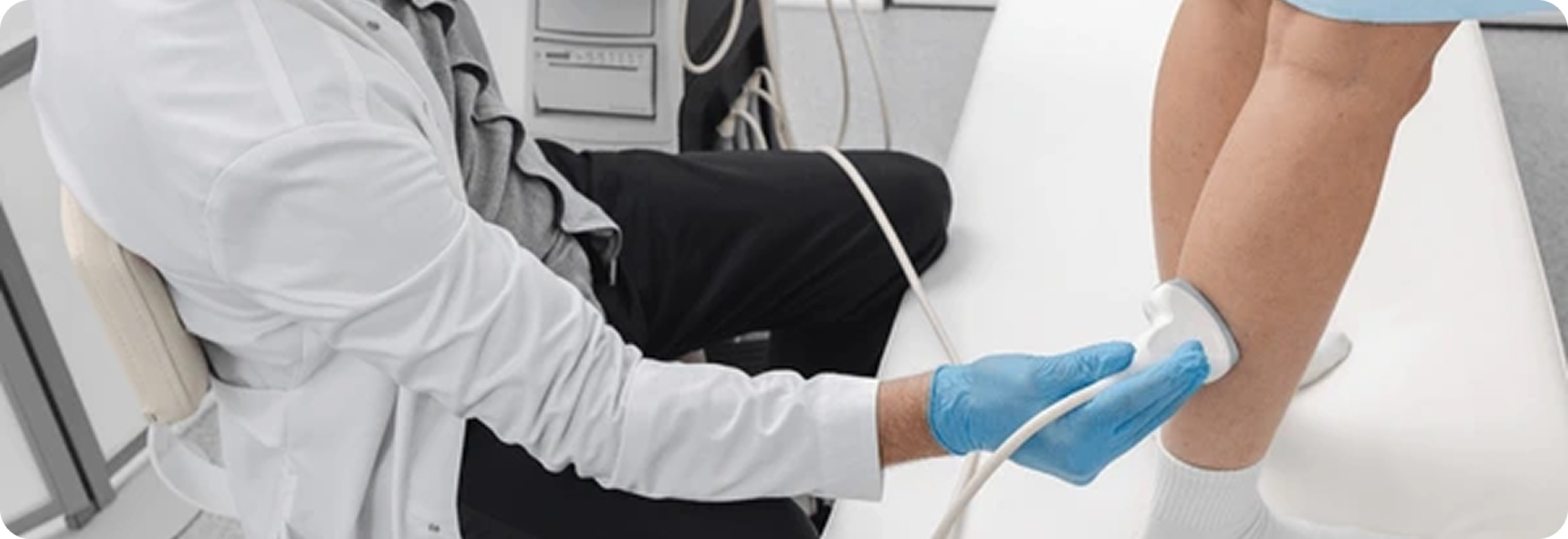 Your doctor reviews symptoms and performs Doppler ultrasound to confirm vein reflux and treatment eligibility.
