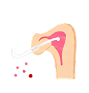 Microscopic particles are gently released to reduce abnormal blood flow linked to pain and stiffness.