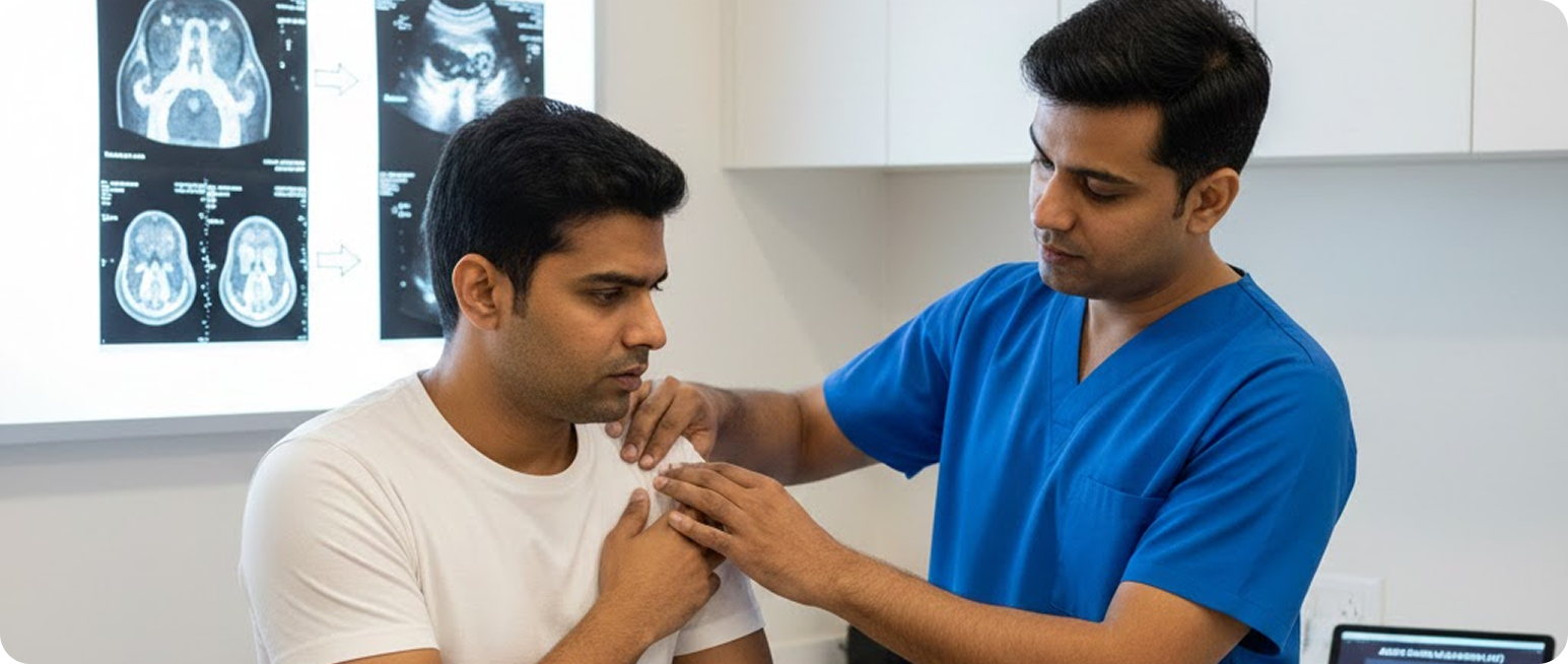 Your doctor evaluates shoulder pain, stiffness, range of motion, and imaging (MRI or ultrasound) to confirm if ACE is suitable for you.